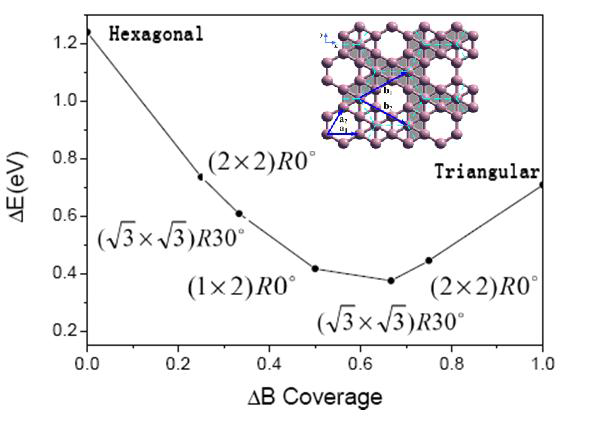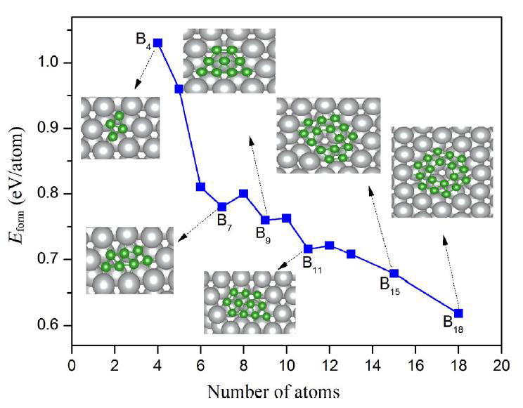 Structural Stability and Electronic Properties of Boron Nanostructures Sep 12, 2017 Stability Boron Nanostructures 7424 Semiconductor nanocrystals (NCs) have been greatly attractive and intensively investigated, which have brought such wide applications as nanoscale electronic and optical devices. Properties of nanomaterials mostly depend on their structures, however, it is challenging to determine the stable nanostructures from numerous possible candidates due to two main obstacles: (i) the accurate calculation of the total energy is necessary but often computationally expensive, and (ii) many isomeric structures should be considered and the number of these structures increases sharply as the size increases. We have developed an effective model[1] to investigate the energetic stability of hydrogenated group-IV nanostructures, followed by the validations from density-functional theory calculations. The magic structures of diamond nanocrystals(CmHn) and silicon nanocrystals(SimHn) are determined, which are in agreement with the experimental observations[2,3]. There is a linear relationship of cohesive energy on the ratio (n/m) and the simplex method is used to determine the lowest energy from a set of possible integer combinations (m,n), where n<=2m + 2. The key task is to determine the lower limit of n for a certain m, which can be realized by allowing X atoms on the surface to walk randomly in the crystal lattice and saturate the configuration with H atoms where necessary, and searching the local minimum of n by iterations. Considering the Si/Ge interactions and mixing entropy[4], the composition profiles of Si/Ge distributions in the nanowires passivated by fluorine (F)/chlorine (Cl)/hydrogen (H) atoms are obtained, which indicates the outmost layer of surface should be mostly occupied by Si. With total Si surface segregation, the diameter and shape of most stable nanowires are found to be determined by the composition x and the passivants’ chemical potential. We propose an efficient approach to determine the stable H-SiCNCs by the convex analysis with the possible candidates pre-screened by the Wang–Landau method and a bond energy model[5]. We find that the configurations of H-SiCNCs are dominated by the hydrogen and carbon chemical potentials according to the phase diagram, and there are structural transitions with the increasing size from tetrahedron, hexahedron, to octahedron. Our finding indicates the possibility of designing electronic nano-devices by modulating the configurations with the control of hydrogen and carbon chemical potential #### References [1] X. Yang et. al, Phys. Rev. B, 83, 205314 (2011); 86, 085440(2012). [2] L. Landt et. al , Phys. Rev. Lett. 103, 047402 (2009). [3] G. Belomoin et. al, Appl. Phys. Lett. 80, 841 (2002). [4] X. Yang et. Al J. Chem. Phys. 139, 154713 (2013). [5] Y. Wang and X. Yang et al J. Phys. D: Appl. Phys. 49, 245305(2016).